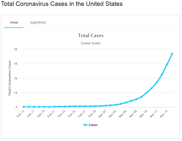 And secondly, take a look at this parabolic rise in the number of cases which have so far been confirmed in the USA: